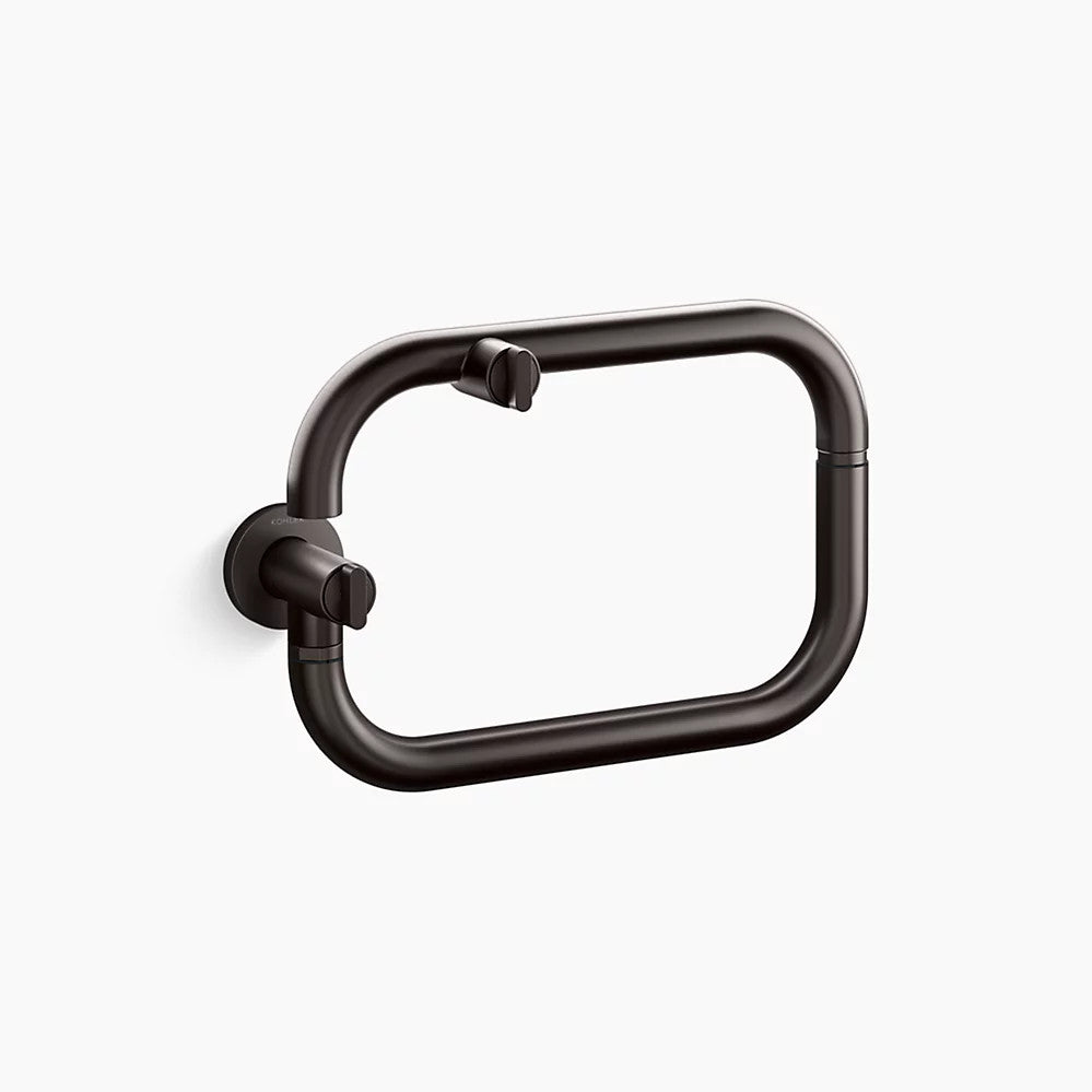 Sleek and minimalist, the KOHLER® Components collection exudes calm sophistication. Strong, confident lines create bold and distinctive silhouettes accentuated by refined design details. The Components wall-mount pot filler melds this very style with a full 360° spout rotation and a 19" spout reach when fully-extended for superior clearance over cooktops and ranges. Plus, a main shutoff knob on the faucet adds safety by eliminating the need to reach directly over hot burners to turn on the water.