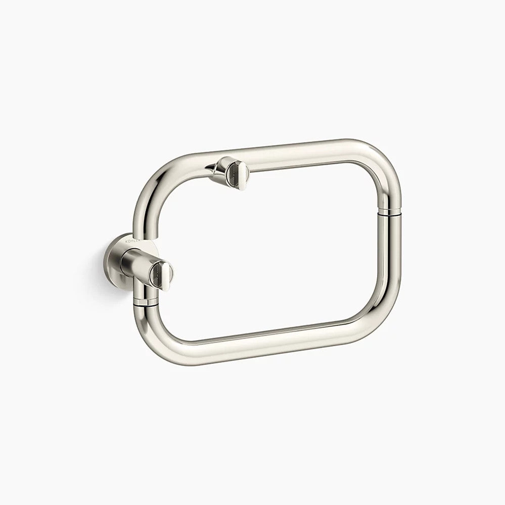 Sleek and minimalist, the KOHLER® Components collection exudes calm sophistication. Strong, confident lines create bold and distinctive silhouettes accentuated by refined design details. The Components wall-mount pot filler melds this very style with a full 360° spout rotation and a 19" spout reach when fully-extended for superior clearance over cooktops and ranges. Plus, a main shutoff knob on the faucet adds safety by eliminating the need to reach directly over hot burners to turn on the water.
