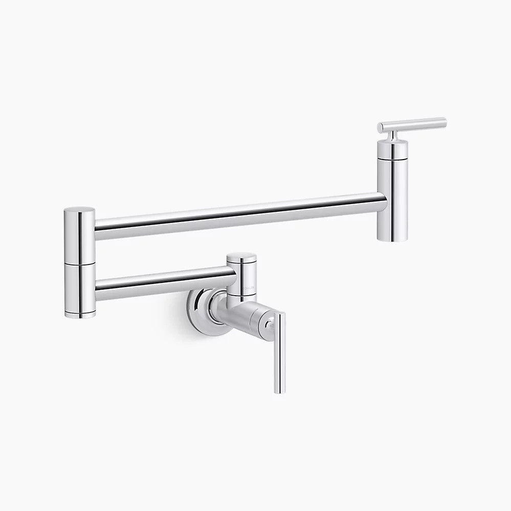 Imagine the practicality of a faucet that takes up no valuable counter space and can fold out of the way when not in use. Now imagine a faucet that can swing both to the left or right, extends to over 23” so that you can fill pots on or near your stove, and fills faster thanks to its robust 5.2 gpm flow rate. The wall-mount pot filler from KOHLER®, with its clean, contemporary design, doesn’t overpower or detract from your kitchen design, but it will still create a stir.