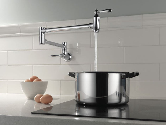 DELTA Traditional Wall Mount Pot Filler Chrome Finish