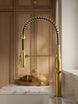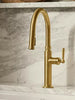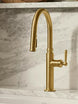 Drawing inspiration from the archives, the Edalyn kitchen faucet collection from Kohler x Studio McGee combines classic and modern influences in a timeless expression for the home. Transitional by design, each faucet is characterized by a distinguished, high-profile spout that is complemented by stacked detailing and clean lines. Beyond its striking appearance, the collection embraces practicality, providing superior spray performance for tackling kitchen tasks.