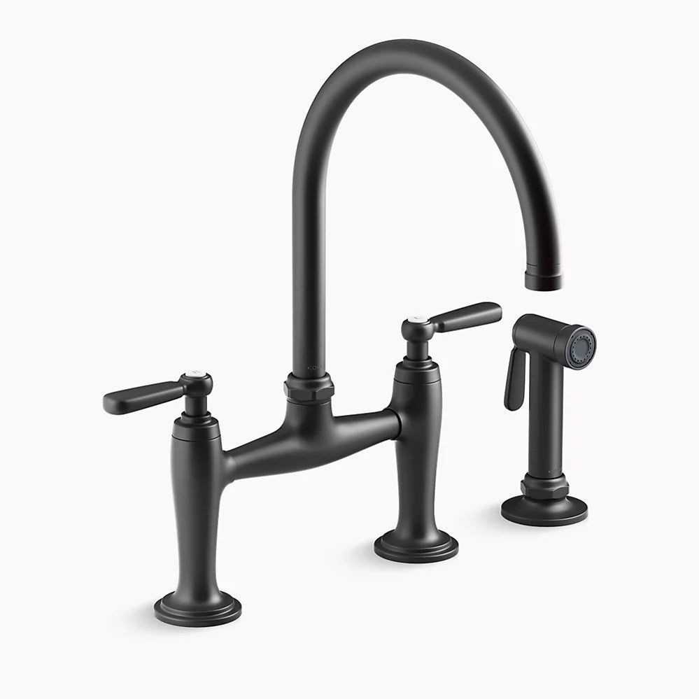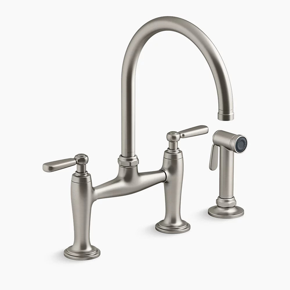 KOHLER Edalyn™ by Studio McGee Two-hole bridge kitchen sink faucet with side sprayer