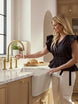 Drawing inspiration from the archives, the Edalyn kitchen faucet collection from Kohler x Studio McGee combines classic and modern influences in a timeless expression for the home. Transitional by design, each faucet is characterized by a distinguished, high-profile spout that is complemented by stacked detailing and clean lines. Beyond its striking appearance, the collection embraces practicality, providing superior spray performance for tackling kitchen tasks.