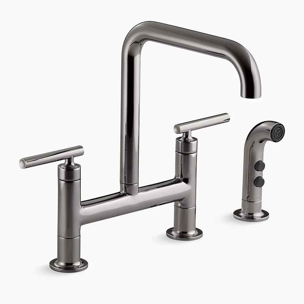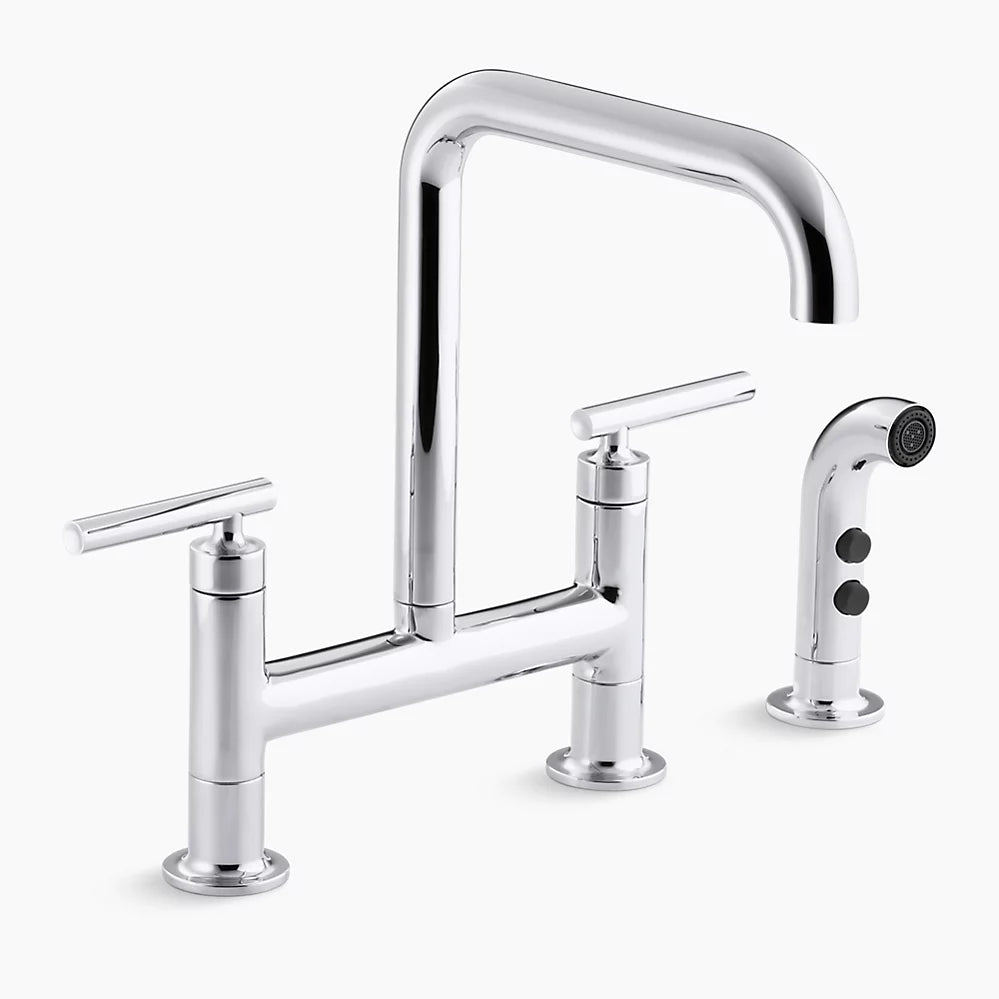 -33%KOHLER Purist® Two-hole bridge kitchen sink faucet with side sprayer