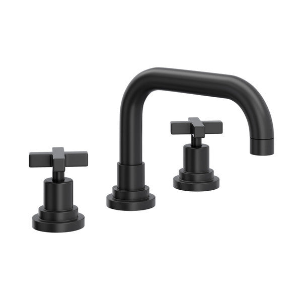 ROHL Lombardia U-Spout Widespread Bathroom Faucet - Matte Black With Cross Handle