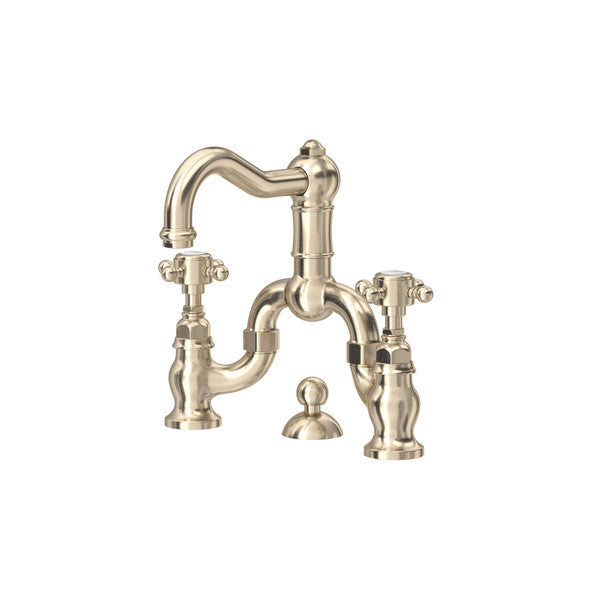 ROHL Acqui Deck Mount Bridge Bathroom Faucet - Italian Brass With Cross Handle