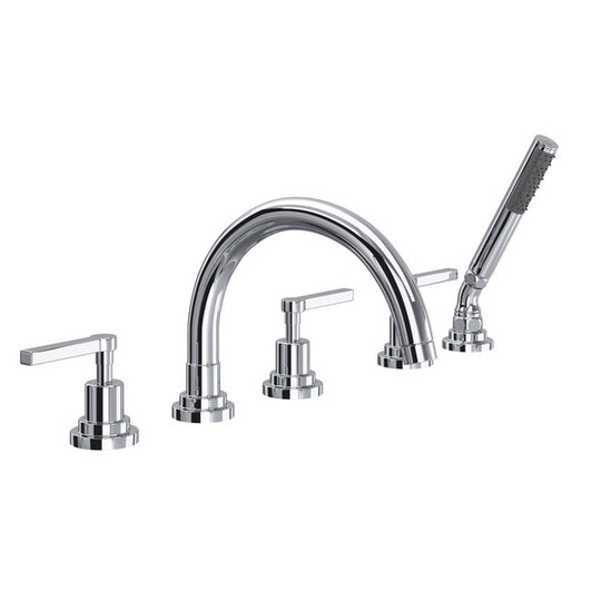 ROHL Lombardia 5-Hole Deck Mount Tub Filler with C-Spout - Polished Chrome