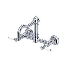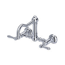 ROHL Acqui Wall Mount Column Spout Bridge Kitchen Faucet - Polished Chrome With Metal Lever Handle