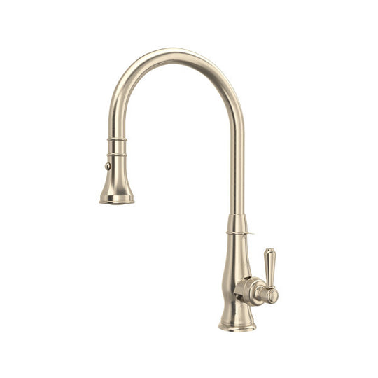 ROHL Patrizia Pulldown Faucet - Satin Nickel With Metal Lever Handle