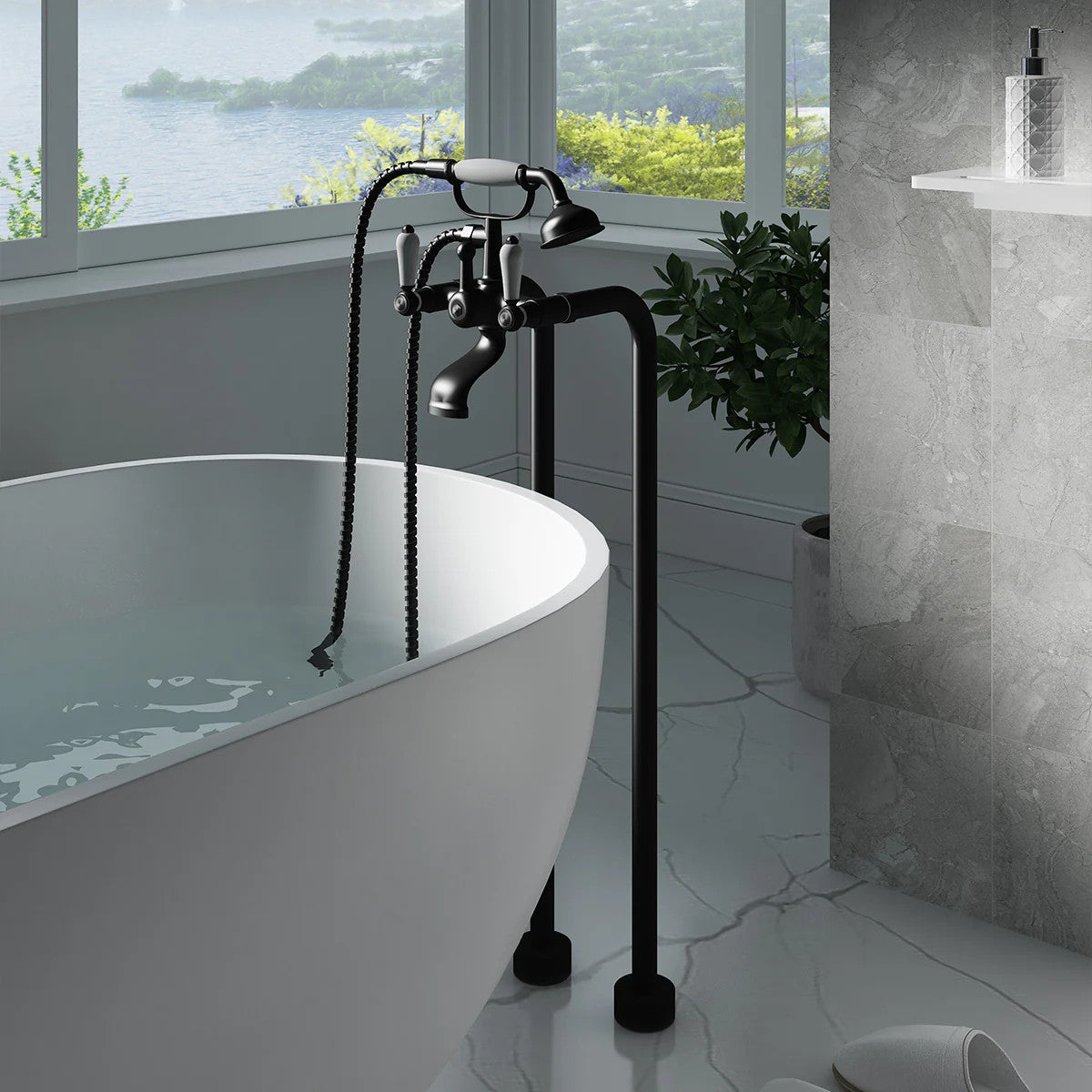 Royal Goose Neck Free Standing Tub Filler with Hand Shower Chrome