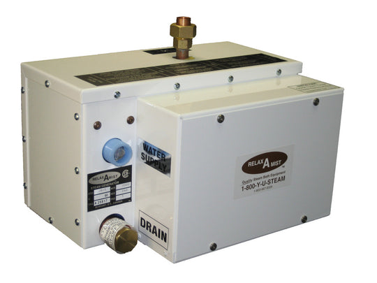 Relax-A-Mist® Steam Equipment Specifications: Max Cubic Feet : 175 OPTIONAL ACCESSORIES: Time & Temperature Control Electronic digital control with time and temperature settings and handheld remote. Drain Valve - Manual, ¾” Drain Valve - Automatic,...Sale price $1,695.00Regular price $2,189.00Sale price $1,695.00Regular price $2,189.00 -