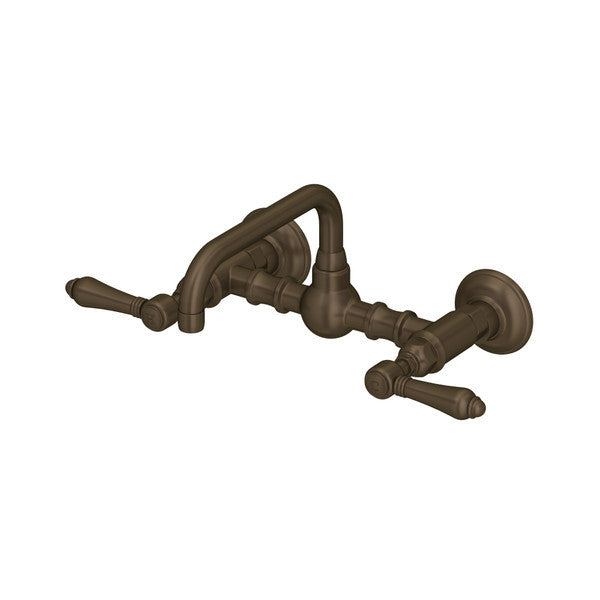 ROHL Acqui Wall Mount Bridge Bathroom Faucet - Tuscan Brass With Metal Lever Handle