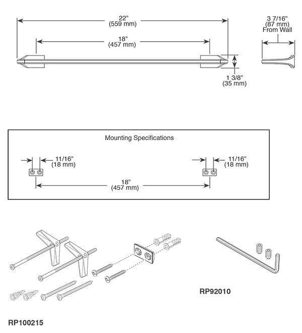 - Note: Plastic anchors, screws, toggle bolts, and mounting brackets are included with the mounting hardware