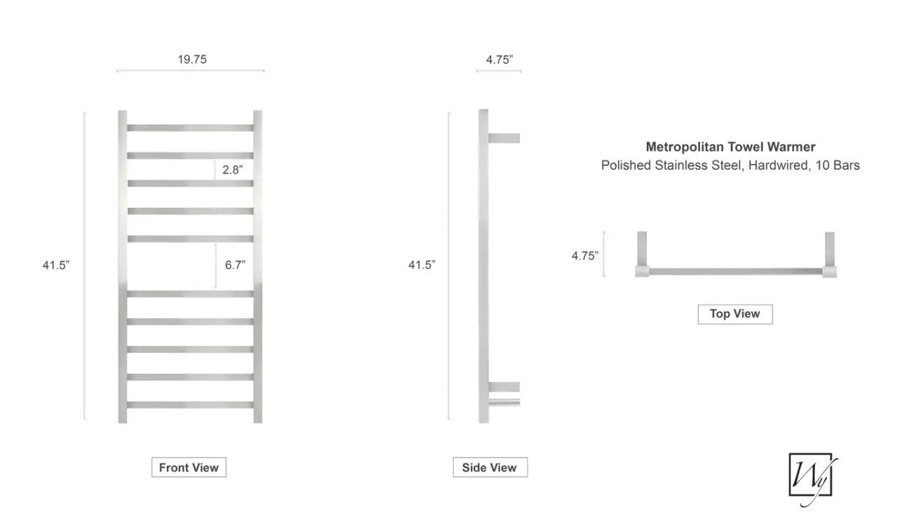 - Generous 10-Bar Design: The Metropolitan towel warmer uses 10 polished stainless steel bars to evenly distribute heat, warming up to 2 large towels or bathrobes