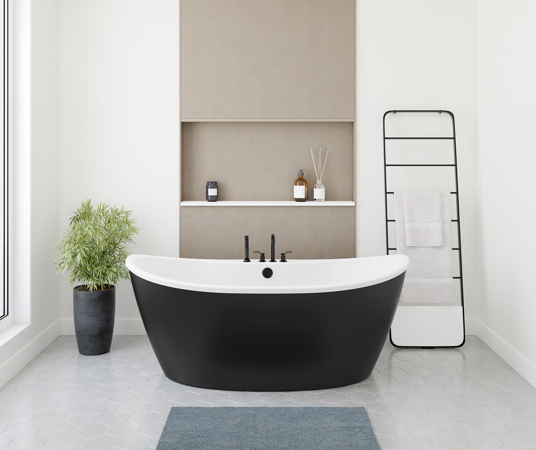 Delsia 6636 AcrylX Freestanding Center Drain Bathtub in White with Black Skirt