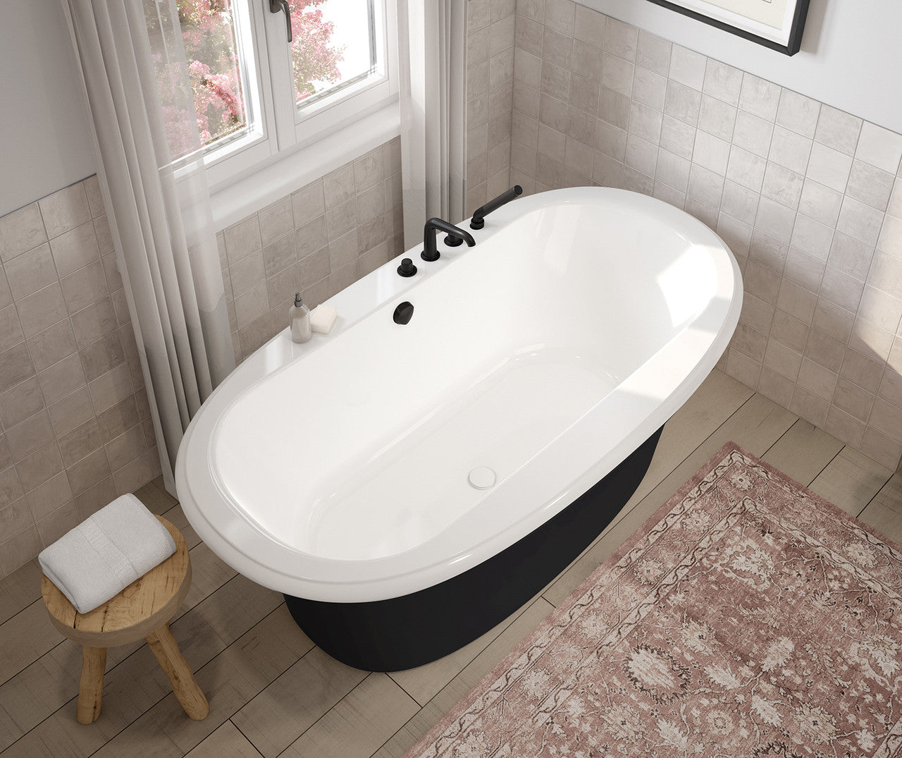 Ella Sleek 66 x 36 Acrylic Freestanding Center Drain Bathtub in White with Black Skirt