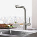 - EASY TO CLEAN: Kitchen faucet sprayer features GROHE SpeedClean rubber nozzles to quickly wipe away limescale with your fingertip