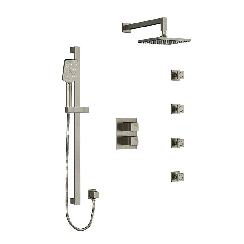 Riobel Reflet Type T/P Double Coaxial System with Hand Shower Rail, 4 Body Jets and Shower Head Brushed Nickel