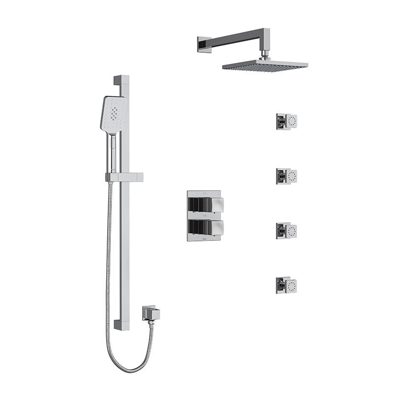 Riobel Reflet Type T/P Double Coaxial System with Hand Shower Rail, 4 Body Jets and Shower Head Chrome