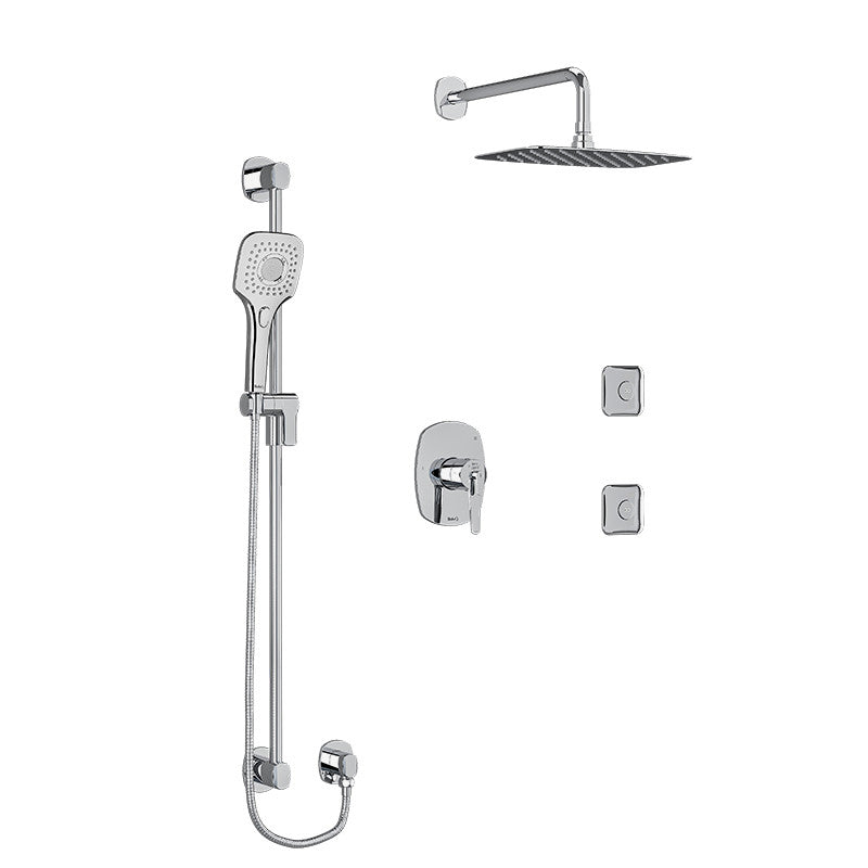 Riobel Venty Type T/P (Thermostatic/Pressure Balance) 1/2" Coaxial 3-Way System, Hand Shower Rail, Elbow Supply, Shower Head and 2 Body Jets Chrome
