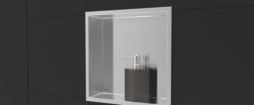 Rubi Nikia Built-In Niche with Shelf Square Corners Brushed Inox - 12" x 24"