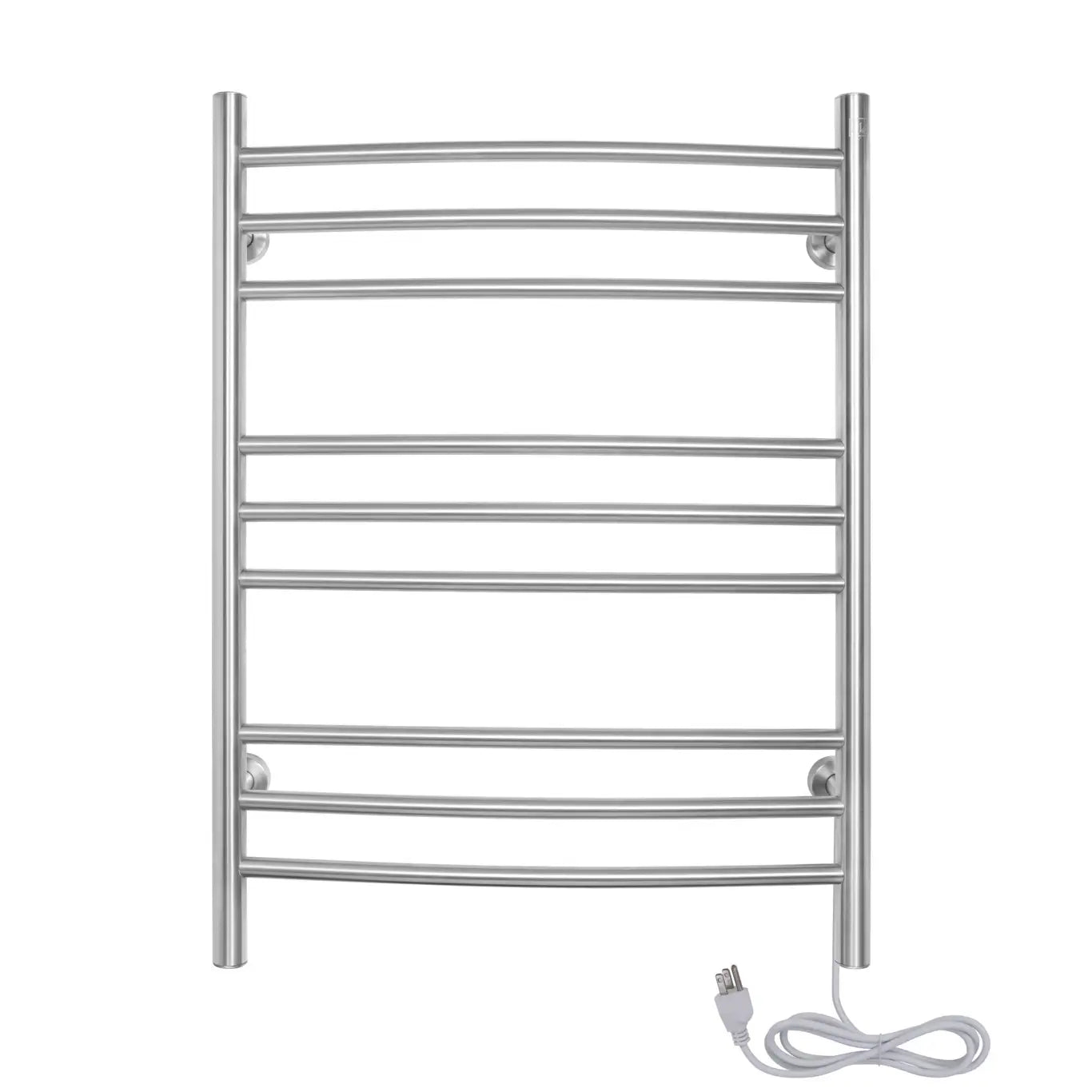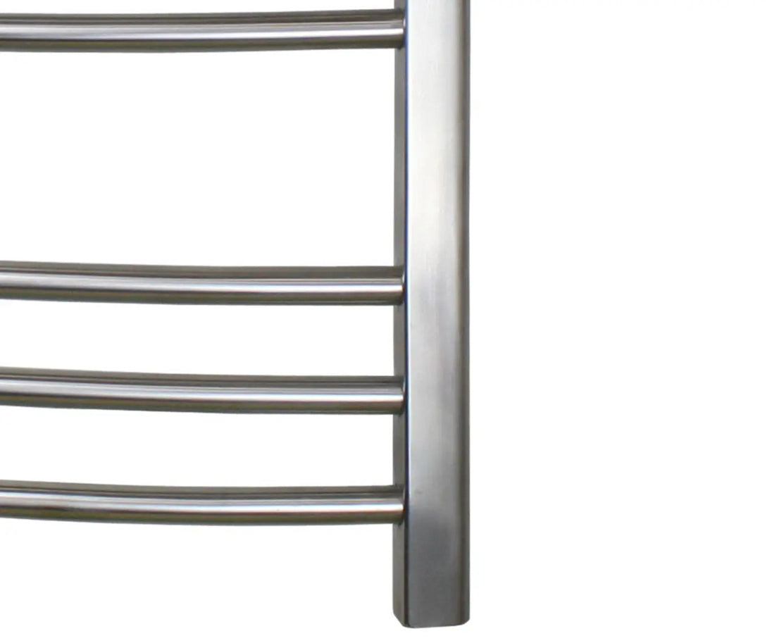 Treat yourself to the ultimate spa experience. With a WarmlyYours Riviera Towel Warmer, you can wrap yourself in the luxuriant warmth of a soft, heated towel after every shower. With a beautiful, brushed stainless steel finish, the Riviera features nine elegantly, curved bars to provide ample space for warming two towels or a bathrobe. Wall-mounted and hardwired, the Riviera operates at 120V and produces 150 watts. In addition to the built-in on/off switch, this model can also be paired with a programmable timer (sold separately) enabling you to conveniently preset it to your schedule to ensure warm, fluffy towel are ready and waiting for you.